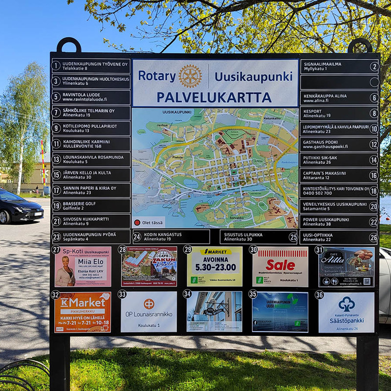 Tärkeintä on näkyvyys. Hyvin suunnitelluilla ja huolella asennettuilla teipeillä näyt hyvin ja erotut muista. Laadukkailla tarratulosteilla merkitset melkein mitä vain. Säätä kestävä kyltti tai opaste oikealla materiaalivalinnalla ohjaa asiakkaasi tai vieraasi perille.